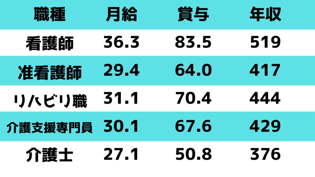 医療福祉系職種の収入比較
